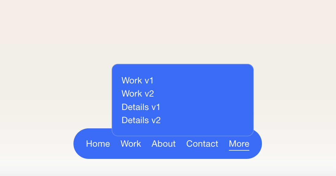 Adds a bottom floating bar style to the header navigation list. This can be removed to revert back to Squarespace’s native navigation at the top of the site.