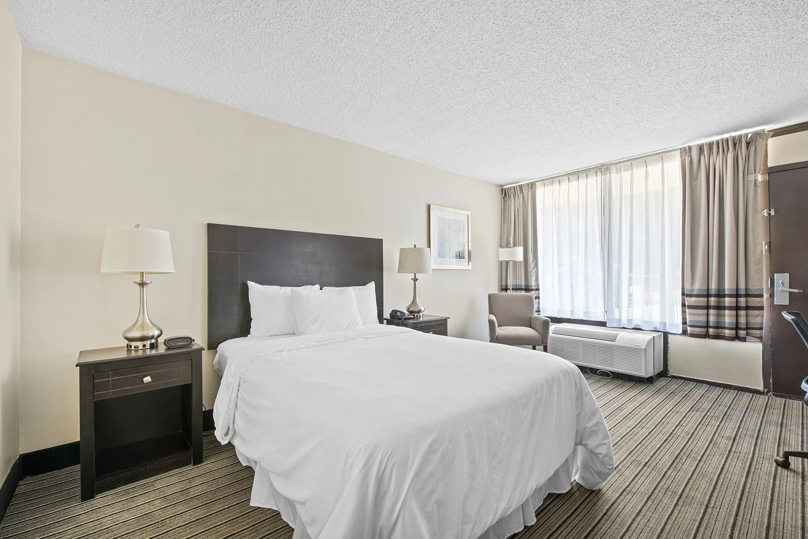 Our 100 newly refreshed guest rooms blend modern comfort with relaxed charm, offering a thoughtful balance of style and convenience. Each space is designed for both rest and functionality, with plush beds, cozy linens, and practical amenities like mini fridges, microwaves, and in-room coffee makers. Warm finishes and welcoming details create a residential feel, while access to our pool, fitness center, and tranquil pondside setting ensures every stay feels both restorative and memorable.