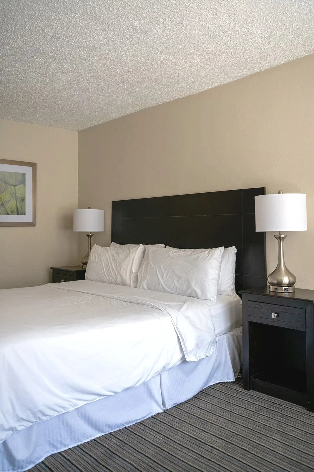 Our spacious King Room is designed for both comfort and function. Recently refreshed, it features a plush king-sized bed with cozy linens, warm lighting, and plenty of space to unwind or stay productive. Whether you’re traveling for business or enjoying a weekend getaway, this room offers a relaxing retreat with all the essentials you need.